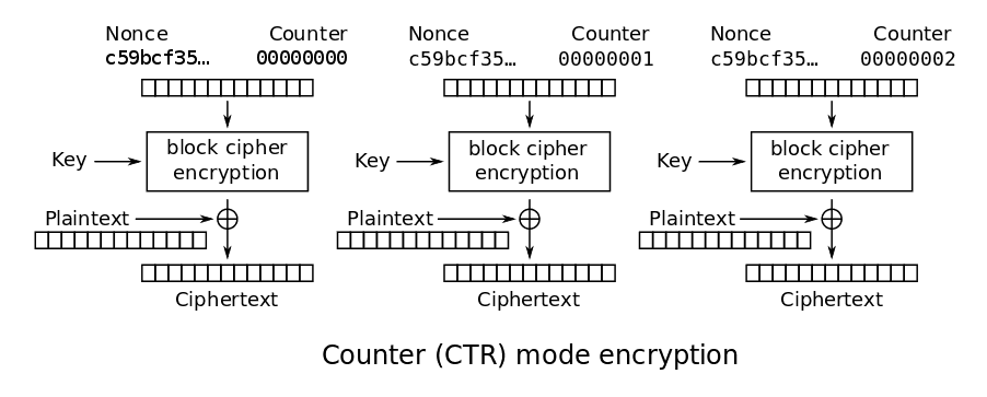 Visualisation of Counter Mode: By WhiteTimberwolf, Public Domain, https://commons.wikimedia.org/w/index.php?curid=26434109